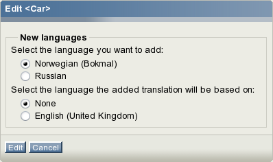 You can edit a content class in any of the languages that it exists in. The following text reveals how this can be done.