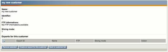 In order to create a new export for this customer, click the «Create an export for this customer» button. The following screen should appear: