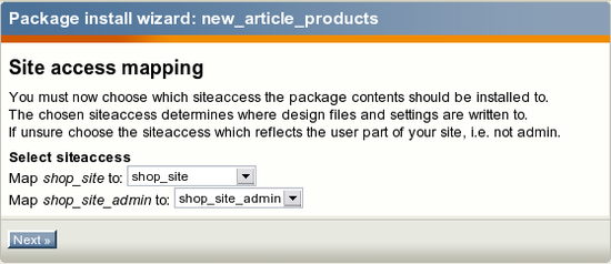 3. If the package contains not only actual content objects but also templates related to these objects, the system will ask which siteaccess these templates should be added to (look at the next screenshot).